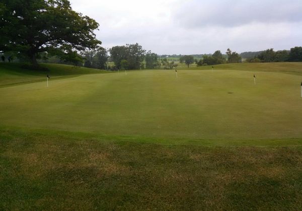 A 5 year old section of a green planted with Tee2Green Pure Distinction bentgrass. Greens were planted on native sands that did not quite meet USGA specifications. In lieu of this, over the last 5 years, the greens have maintained 12 inch roots, never developed layering, and surfaces are poa-free rolling 14 feet on the stimpmeter.
